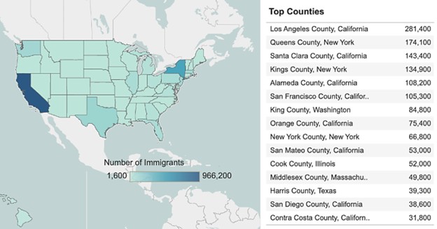 - 舊金山灣區與聖荷西:矽穀吸引大批科技專業人士與留學生畢業後留下。